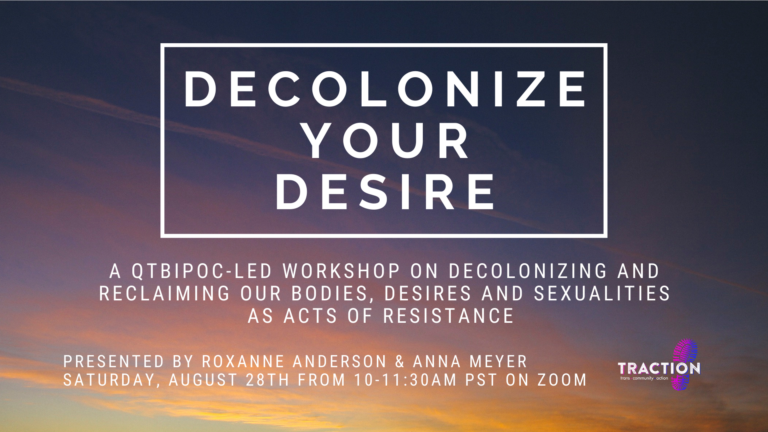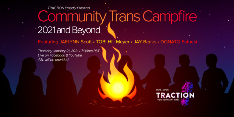 Founded in 2019, TRACTION is a trans-led 501(c)(3) non-profit organization in Washington state. Our mission is to cultivate connection, visibility, and belonging for transgender and gender-diverse people through service in support of underserved communities.