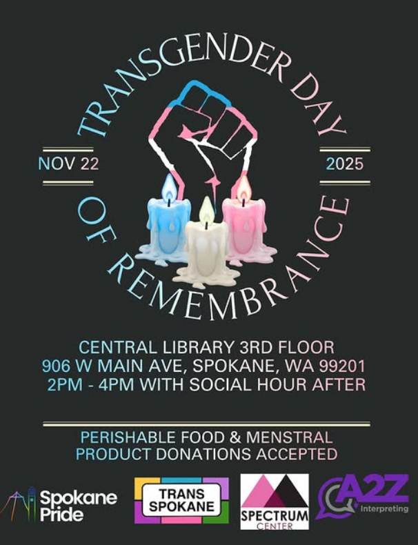 Transgender Day of Remembrance - Spokane 2 - 4 pm with social hour after Perishable food and menstrual product donations accepted