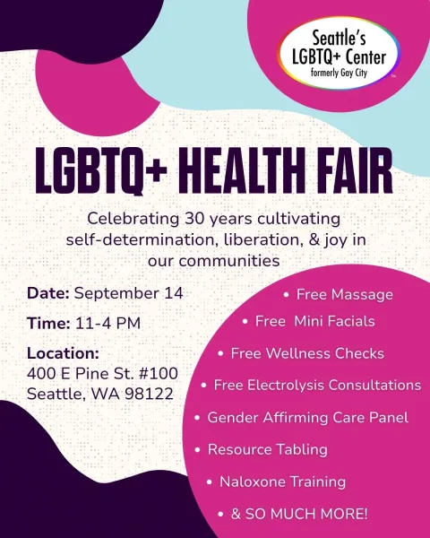 LGBTQ+ Health Fair Celebrate 30 years of care, joy, and liberation at our FREE LGBTQ+ Health Fair! What’s happening: Join us for a free, in-person event all about your well-being. We’ll