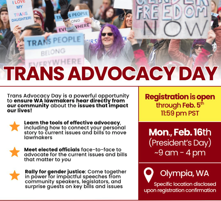 Trans Advocacy Day 2026 Each year Gender Justice League brings hundreds of Trans people and allies to the state capitol of Olympia, WA, to offer training on effective advocacy and […]